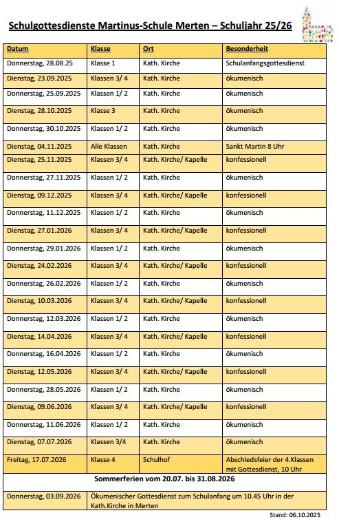 Schulgottesdienste in Merten im Schuljahr 2025/2026